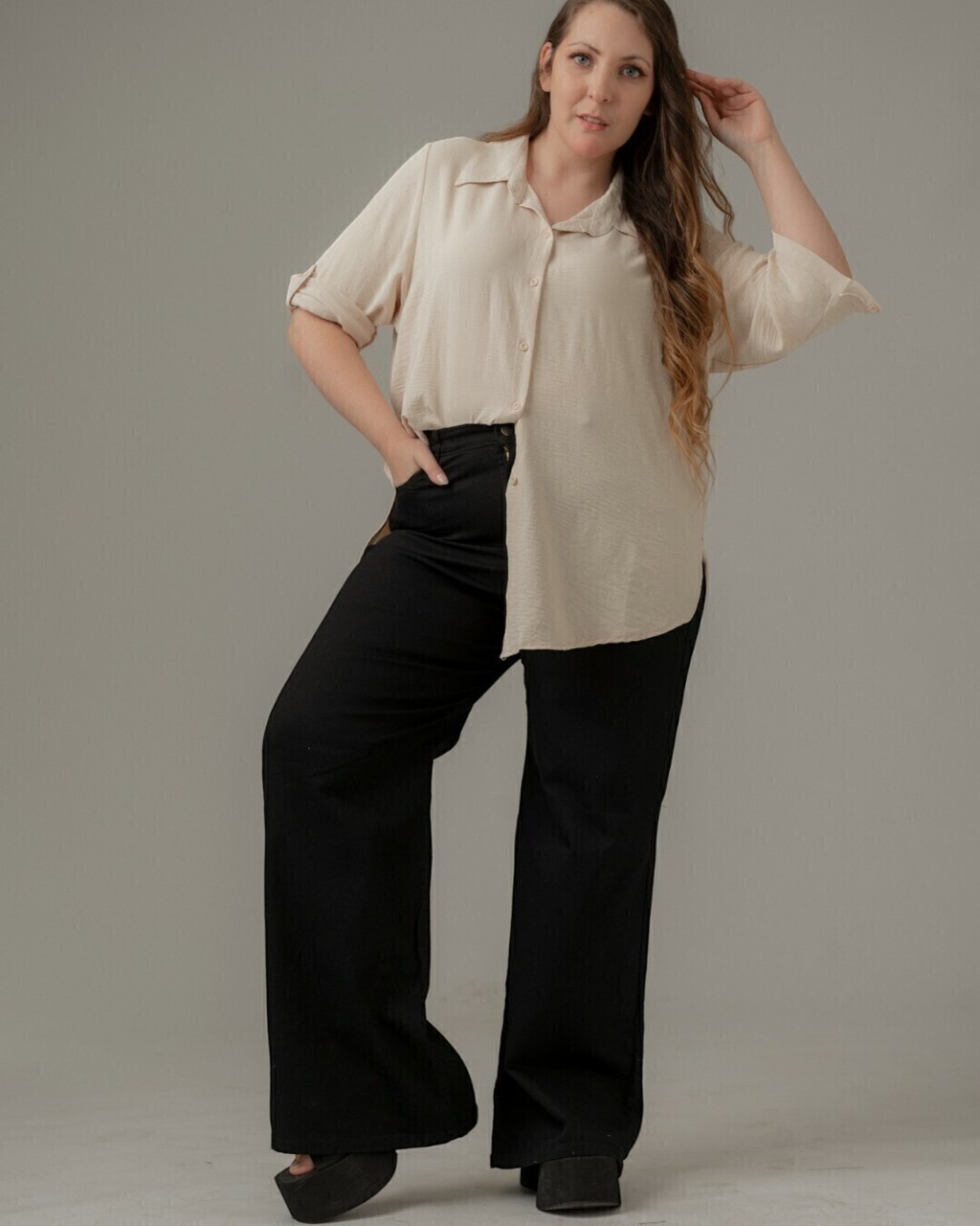 ✨ Wide leg negro con cintura alta, pierna ancha y tela elastizada. Cómodo, moderno y real: no aprieta, se adapta y estiliza sin marcar. Vestite con libertad, sin resignar diseño ni comodidad.