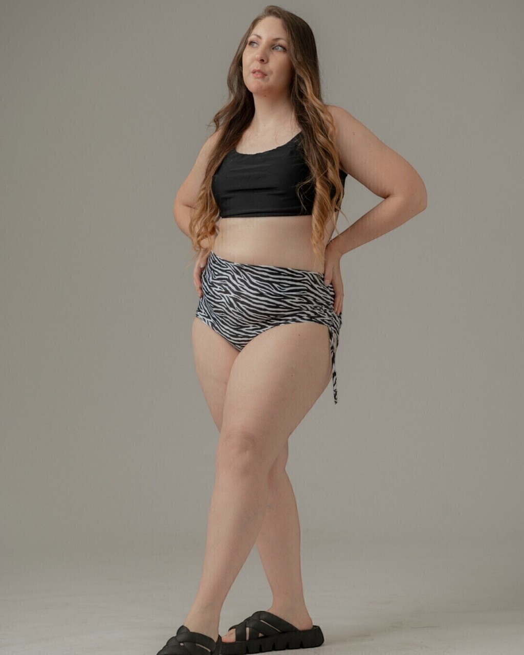 • Culotte de tiro alto ajustable: Llega casi al ombligo, completamente forrada en su interior, con frunces ajustables en los costados que te permiten levantarla y hacerla más cavada según tu estilo.